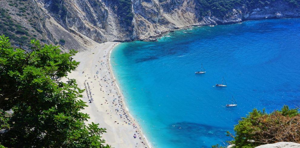 From there, enjoy the charm of Agia Efimia, the traditional-yet-cosmopolitan harbour of Fiskardo, and the postcard-perfect village of Assos. The day wouldn’t be complete without a stop at Myrtos Beach—often considered the crown jewel of Kefalonia’s beaches.